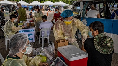 Pusat vaksinasi COVID-19 di seluruh ibu kota Filipina, Manila, buka selama 24 jam. Ini dilakukan untuk mempercepat laju vaksinasi di tengah lonjakan kasus akibat penyebaran virus Corona.