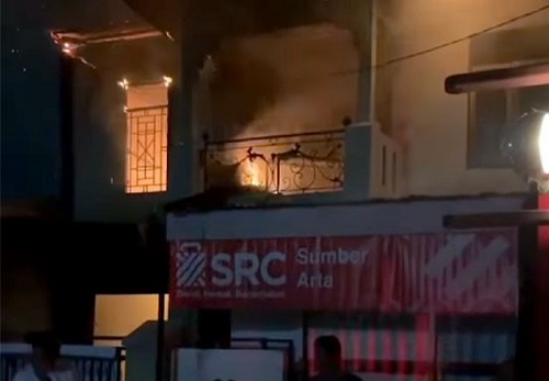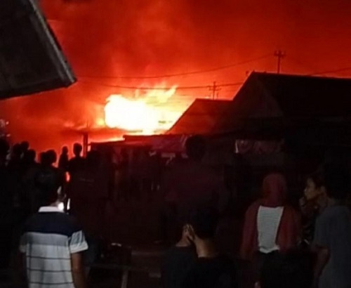 Wisma Abu di Jalan Abdul Manaf, Kota Tembilahan, Kabupaten Indragiri Hilir (Inhil) terbakar, Senin (14/12/2020) malam. Enam orang dinyatakan.