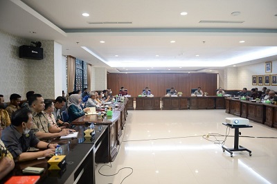 Asisten II Setdaprov Riau Job Kurniawan memimpin rapat pemantauan stabilitas pasokan dan harga pangan di Ruang Rapat Posko Satgas Ketahanan.