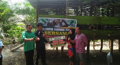 Wakil Ketua Baznas Kabupaten Pelalawan Suwardi didampingi Kasi Kesejahteraan Sosial Kecamatan Ukui Widya Lestari dan Lurah Ukui Yulius Effendi.