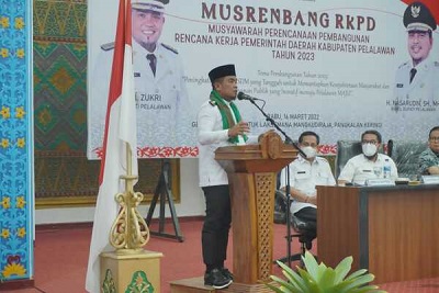 Bupati Pelalawan Zukri didampingi Wakil Bupati Pelalawan Nasaruddin buka Musyawarah Rencana Pembangunan (Musrenbang).