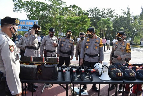 Kepolisian Resor (Polres) Indragiri Hulu (Inhu), Selasa (19/1/2021) pagi melaksanakan apel kesiapan kontijensi bencana.