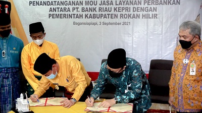 Pemerintah Kabupaten Rokan Hilir (Rohil) tanda tangani MoU jasa layanan perbankan dengan PT Bank Riau Kepri. Penandatanganan MoU langsung dilakukan Bupati Rohil Afrizal Sintong.