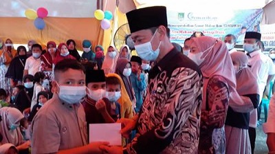 Setelah penaburan benih ikan di beberapa kepenghuluan di Kecamatan Rimba Melintang, Bupati Rohil Afrizal Sintong menyantuni 200 orang anak yatim di Kecamatan Tanah.