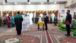 Bupati Rokan Hilir (Rohil) Afrizal Sintong secara langsung melantik dan mengambil sumpah jabatan tiga penjabat Penghulu..