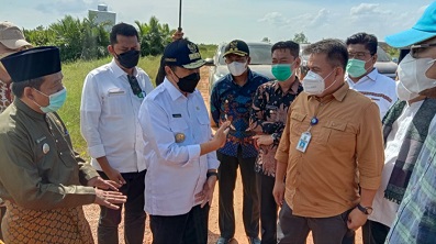 Gubernur Riau Syamsuar didampingi anggota DPRD Riau Dapil Rohil Karmila Sari meninjau kondisi jalan pesisir Rohil di Kecamatan Pekaitan, Jumat (30/7/2021).