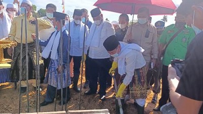 Bupati Rohil, Afrizal Sintong meletakkan batu pertama pembangunan Masjid Ali Imran Darussalam di Kelurahan Bagan Sinembah.