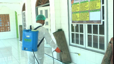 Menjelang pelaksanaan Salat Iduladha 1442 H/2021 M, sejumlah masjid dan musala di pusat ibu kota Rohil disemprot disinfektan. Penyemprotan.