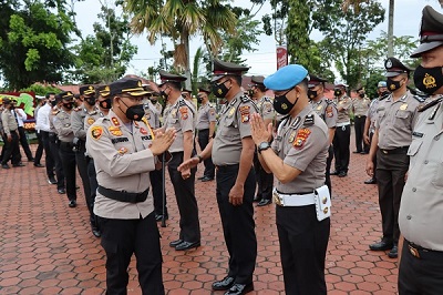 Kapolres Rohil, AKBP Nurhadi Ismanto pimpin upacara kenaikan pangkat 80 Personel Polres Rohil dan 12 Personel Batalyon B Sat Brimob Polda.