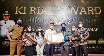 Bupati Rohil, Afrizal Sintong menerima penghargaan Pemeringkatan dan Penganugerahan Badan Publik se-Provinsi Riau dari Komisi Informasi.