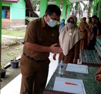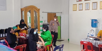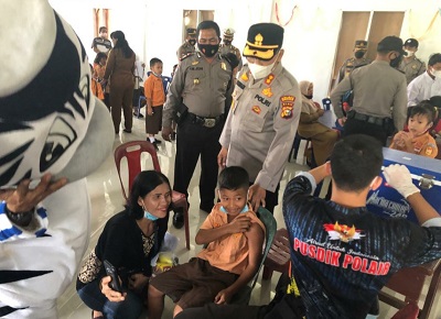 Kapolres Rohil AKBP Nurhadi Ismanto meninjau vaksinasi anak usia 6-11 tahun di Sekolah Dasar (SD) Yayasan Pelita.