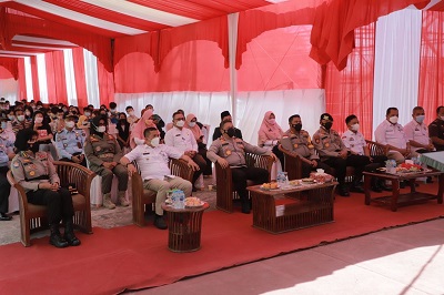 Kapolda Riau Riau Irjen Pol Agung Setia Imam Effendi meresmikan Gedung Vaksin Center sekaligus meninjau pelaksanaan vaksin massal Polres Kepulauan Meranti di Polsek Tebing Tinggi, Rabu (6/10/2021)..