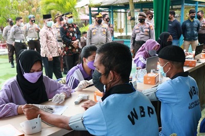 Lembaga Pemasyarakatan (Lapas) Kelas II B Selatpanjang, Kabupaten Kepulauan Meranti menerapkan protokol kesehatan secara ketat terhadap para.