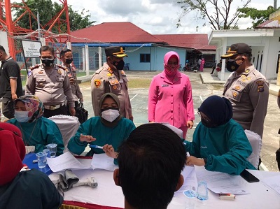 Dalam rangka menyambut HUT ke-76 Kemerdekaan Republik Indonesia, Polres Kepulauan Meranti, Riau, menggelar vaksinasi Covid-19..