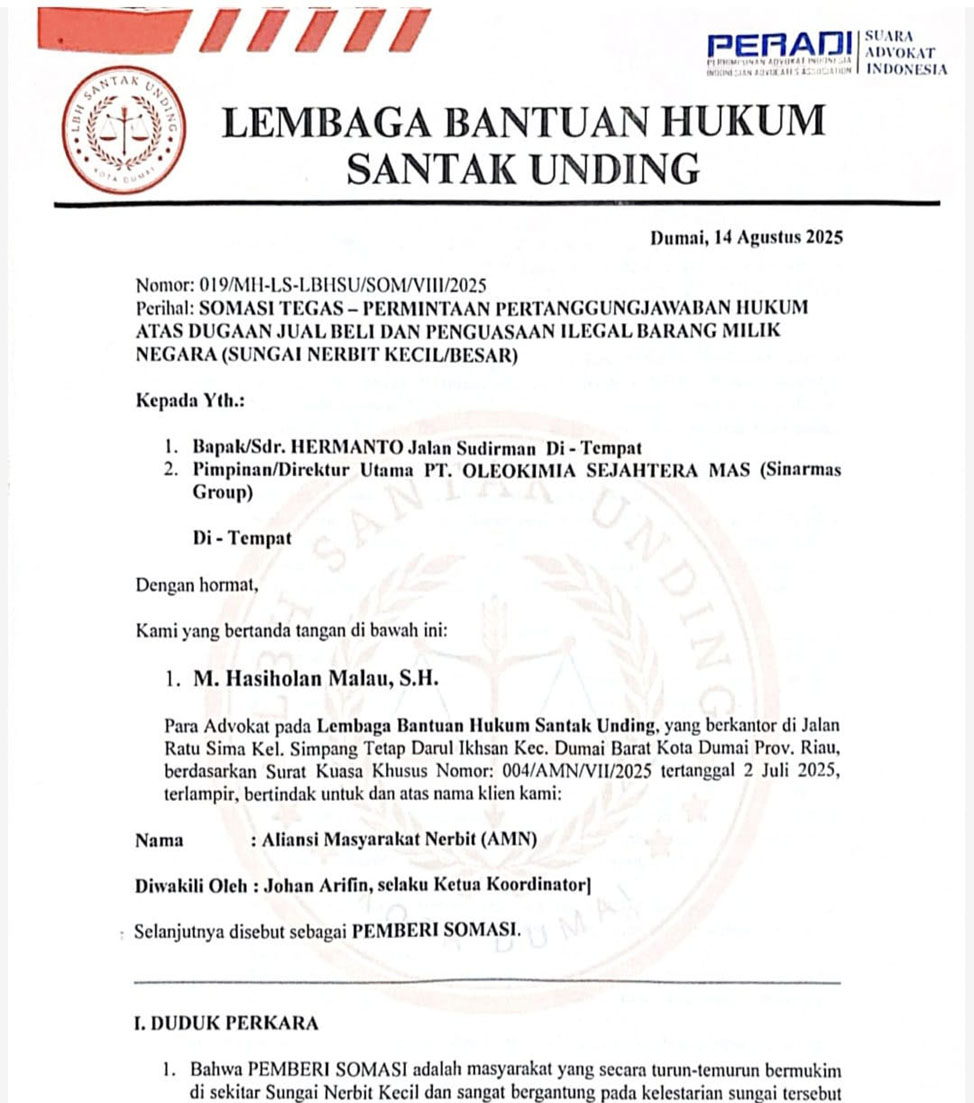 Aliansi Masyarakat Nerbit (AMN) Lubuk Gaung Sungai Sembilan karena Laporan AMN ke Balai Wilayah Sungai Sumatera (BWSS) III, Dinas Lingkungan Hidup.