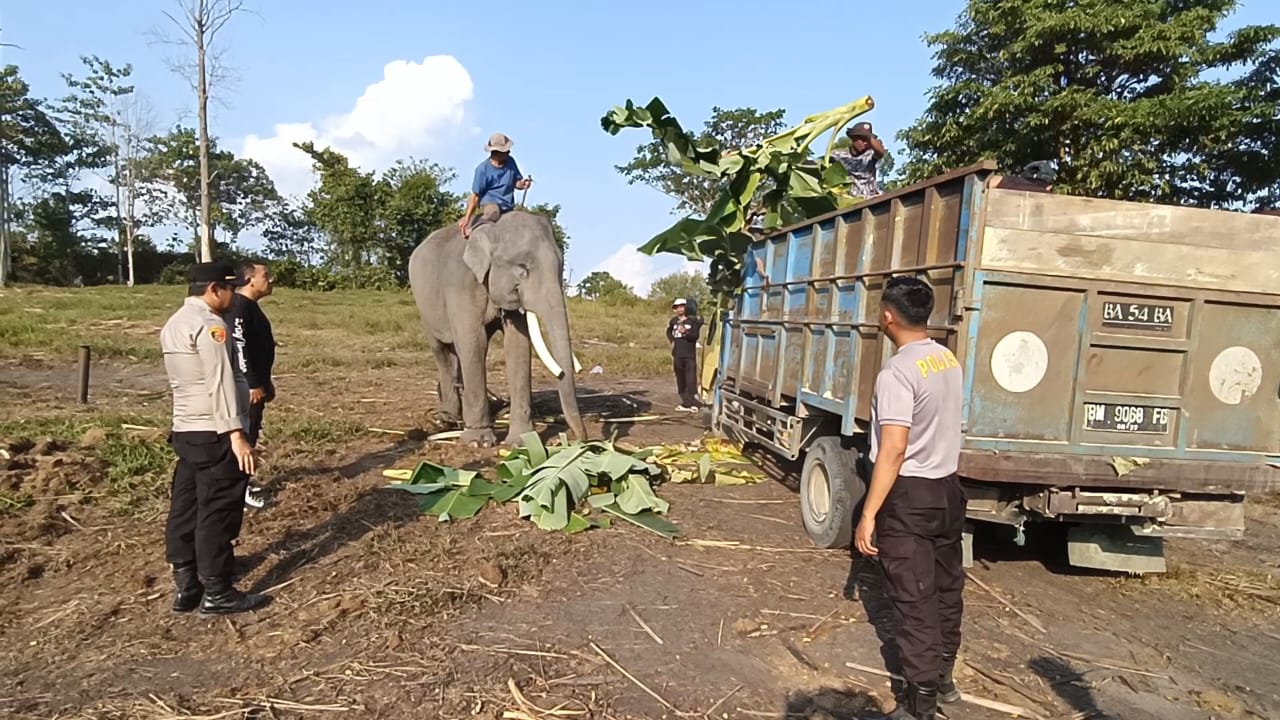 Konco Ngopi dan Polisi Bersinergi Salurkan Pakan Gajah di Tapung.