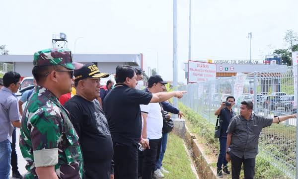 Sekdakab Kampar, Yusri melakukan peninjauan di Tol Pekanbaru-Bangkinang di Desa Kualu Nenas, Kecamatan Tambang, Kabupaten Kampar, Minggu.