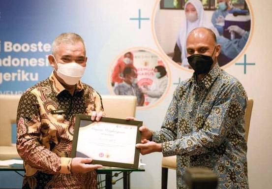 Penjabat Bupati Kampar Dr H Kamsol mendapatkan apresiasi dan penghargaan atas cakupan pencapaian vaksinasi Covid-19..