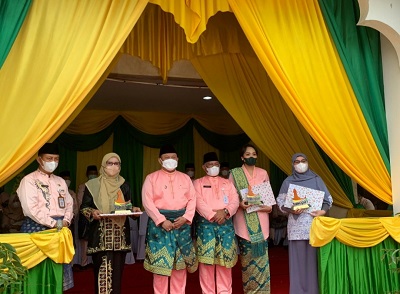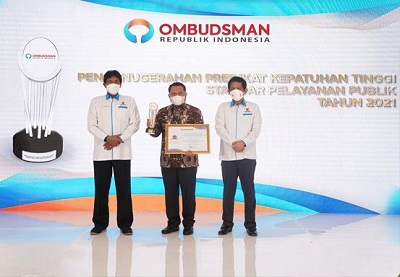 Bupati Kampar H Catur Sugeng Susanto kembali menerima penghargaan Penganugrahan Predikat Kepatuhan Tinggi Standar Pelayanan Publik.