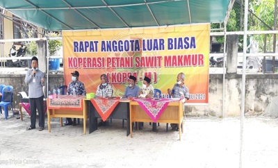Para petani yang tergabung dalam Koperasi Sawit Makmur (Kopsa-M), Desa Pangkalan Baru, Siak Hulu, Kabupaten Kampar,.