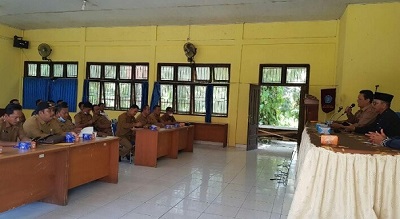 Kapolsek Siak Hulu Kompol Rusyandi Zuhri Siregar melakukan sosialisasi vaksinasi Covid-19 di SDN 011 Desa Baru Jalan Raya Pasir.