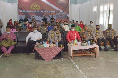 Memperingati Hari Santri Nasional ke-4 tahun 2021, Polda Riau menggelar vaksinasi massal di Pondok Pesantren Hidayatul Salafiyah Desa Utama Karya Kecamatan Kampar Kiri Tengah.
