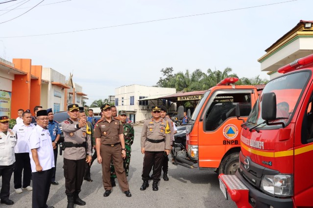 Antisipasi terjadinya kebakaran hutan dan lahan (Karhutla) tahun 2023, Polres Pelalawan dan instansi terkait menggelar apel.