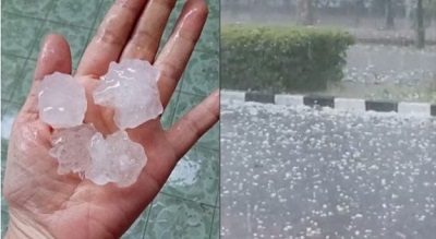 Fenomena hujan es terjadi di Desa Jake, Kecamatan Kuantan Tengah, Kabupaten Kuantan Singingi, Riau, Selasa (22/3/2022) sore.