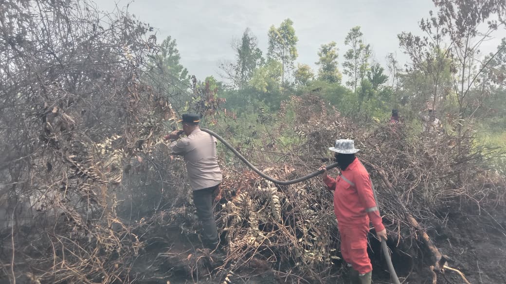 Tunjukan Kesigapan, Polsek Kampar Tangani Karhutla di Pemukiman Warga Rimbo.