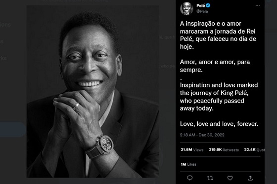Legenda sepakbola Brasil, Edson Arantes do Nascimento alias Pele meninggal dunia pada Kamis (29/12/2022) waktu Sao Paulo..