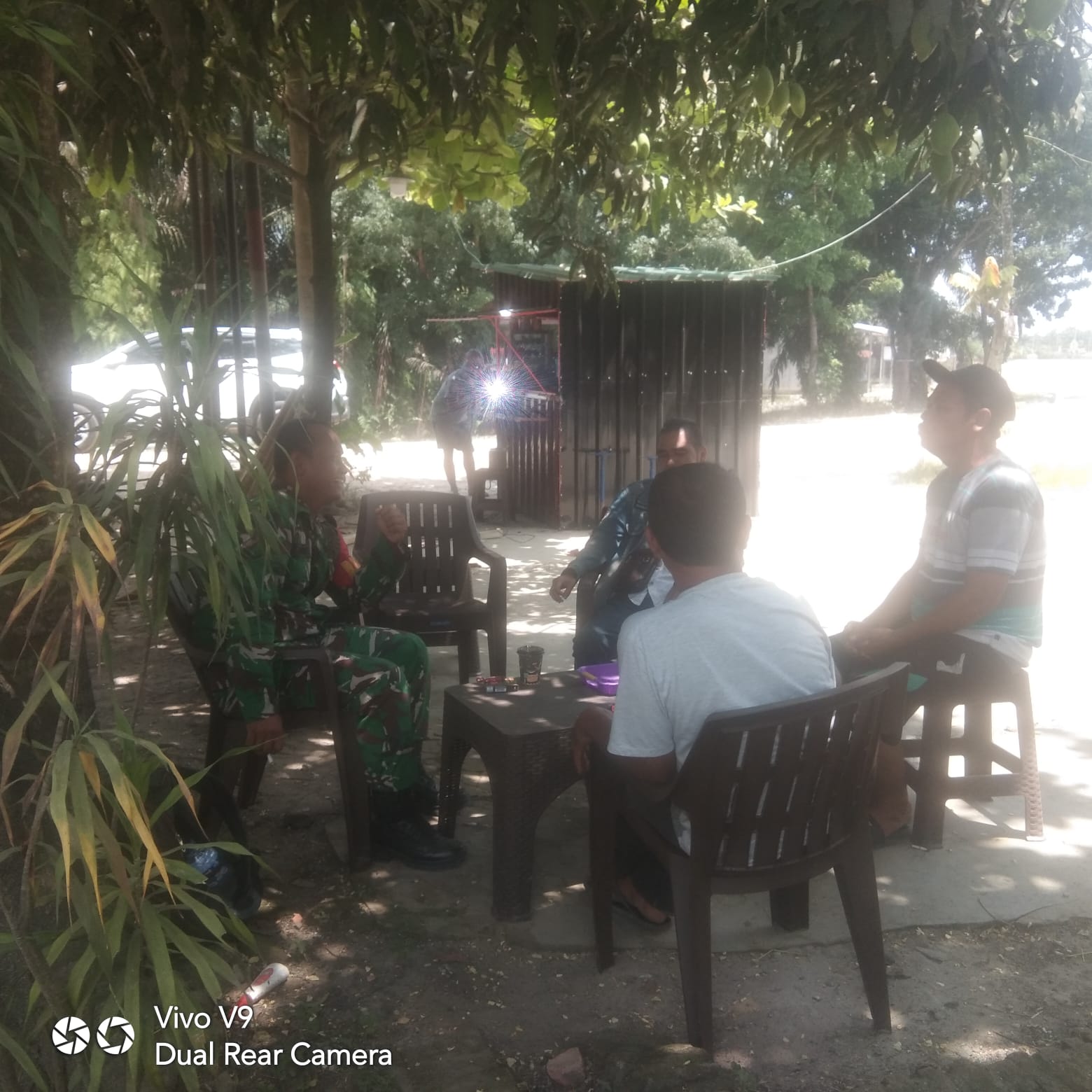Dengan memilih lokasi sederhana di bawah rindang pepohonan, Serda Fretriadi duduk santai bersama warga sambil menikmati secangkir kopi dan berdialog ringan tentang berbagai hal yang terjadi di lingkungan sekitar.
