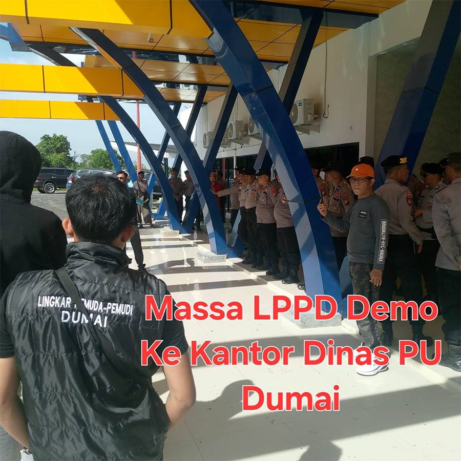 Dumai. Mimbarnegri.com,--|| Puluhan massa Lingkar Pemuda Pemudi Dumai (LPPD) Jumat, (07/11/2025) menggelar aksi demo ke kantor Dinas PU Dumai. massa aksi mendapat pengawalan dari Kepolisian dan Satpol PP. Aksi dipimpin Ketua umum LPPD Agung Gumilang S.A.P dalam orasinya Agung mempersoalkan terkait pelepasan lahan Bantaran Sungai Dumai diduga banyak kejanggalan massa aksi juga mendesak Aparat Penegak Hukum (APH) Kejaksaan, Kepolisian dan Komisi Pemberantasan Korupsi turun tangan mengusut sampai tuntas dugaan pelanggaran proyek pelepasan lahan bantaran Sungai Dumai yang diduga berpotensi kebocoran anggaran.